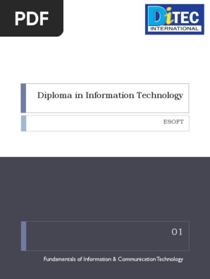 To successfully complete this Diploma course and become an Alison Graduate, you need to achieve 80% or higher in each course assessment Once you have completed this Diploma course, you have the option to acquire an official Diploma, which is a great way to share your achievement with the world. DITEC ESOFT International Diploma in Information Technology 622 likes · 2 talking about this Best suited for beginners who wish to obtain a thorough knowledge in IT for higher studies. At present, the information technology Diploma course for which the most number of students enroll after their GCE (Advanced Level) Examination is the DITEC Information Technology Diploma Course.