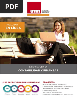 Un Máster en Contabilidad y Finanzas es un programa de posgrado competitivo que se enfoca en estudios avanzados de contabilidad y administración financiera, incluida la contabilidad internacional Brinda conocimientos sobre prácticas contables, comercio, industria y finanzas. 411 Requisitos para poder inscribirse 42 Licenciaturas en línea UnADM;. Contabilidad en México Guía completa de Universidades donde estudiar Contabilidad en línea o presenciales.