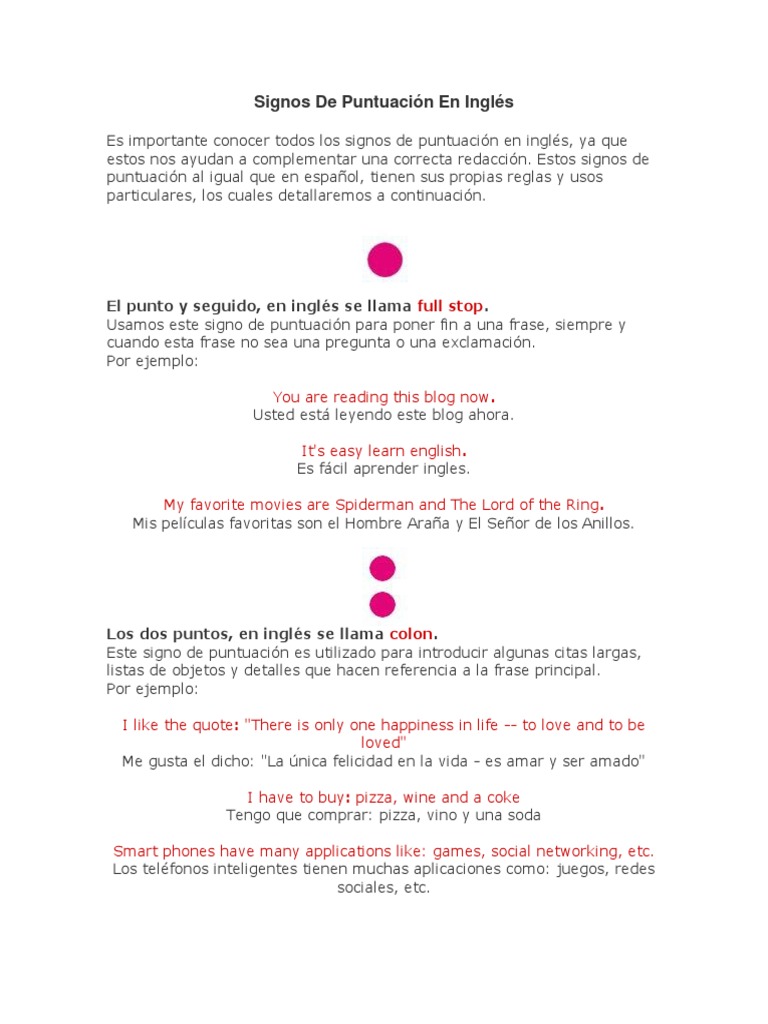 Signos De Puntuacion En Ingles Ejemplos Coleccion De Ejemplo